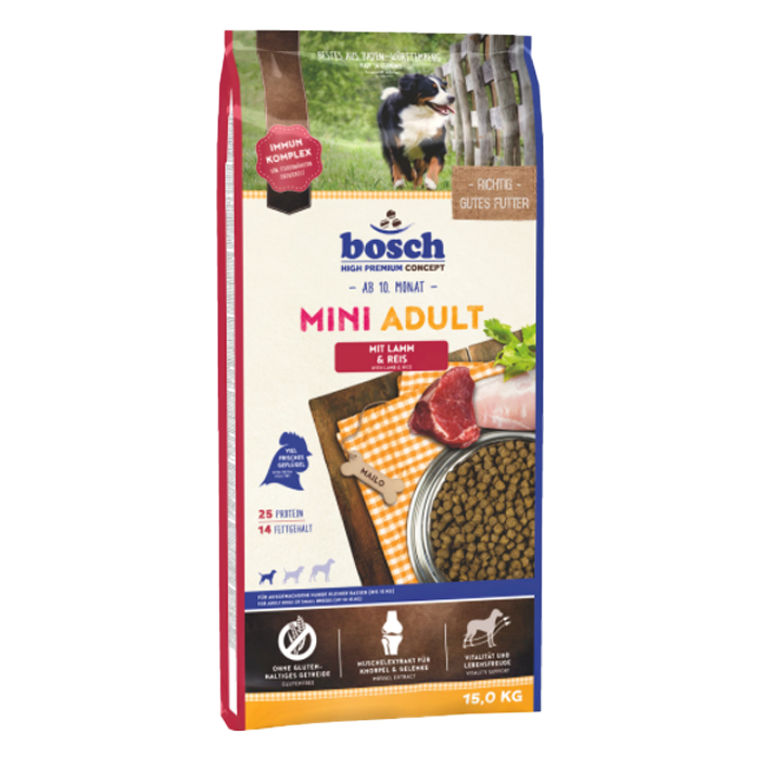 Bosch Mini Adult hrana uscata pentru caini cu miel si orez 15 kg