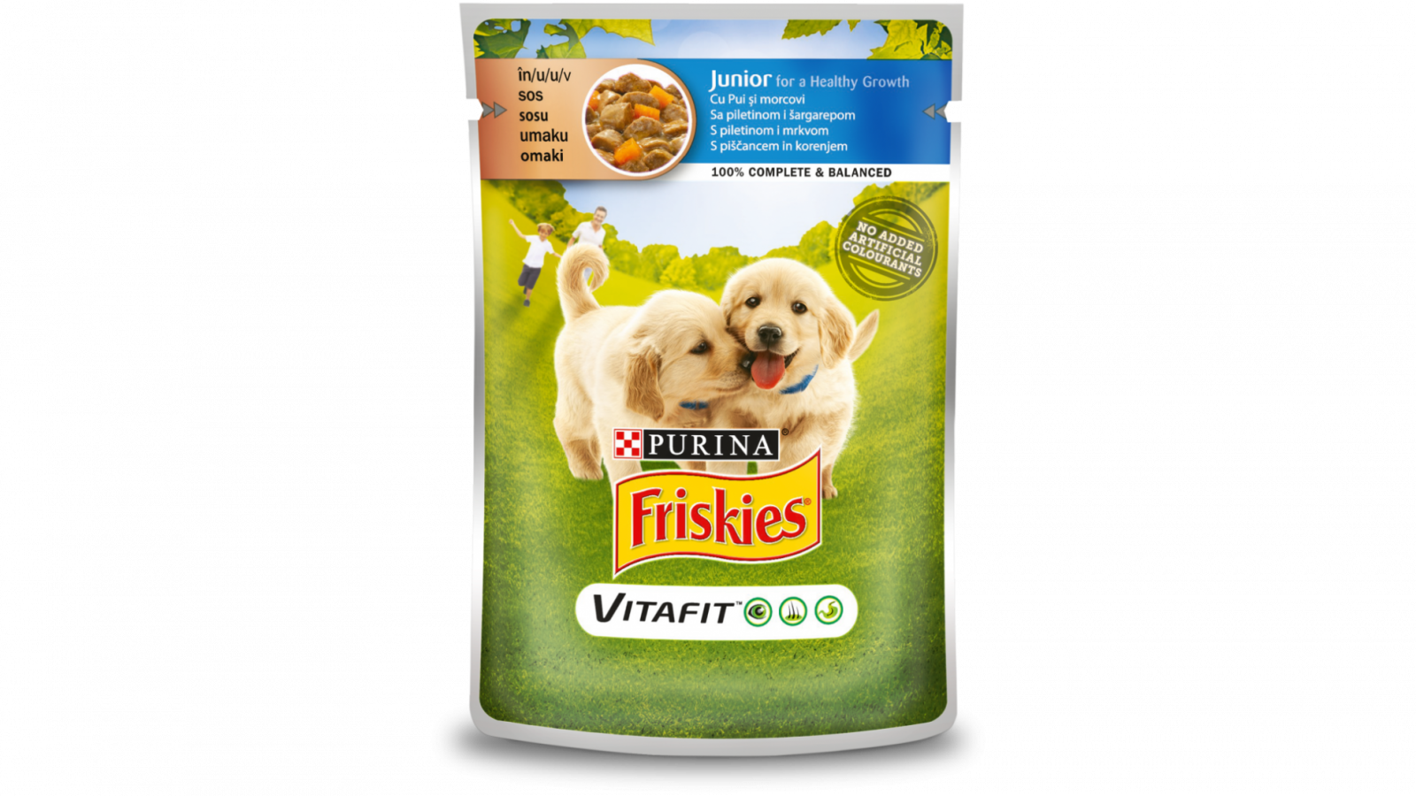 Friskies Plic Hrană Umefă pentru Căței Junior cu Pui și Morcovi în Aspic este formulată pentru a susține sănătatea și bunăstarea cățelului tău junior în fiecare etapă a creșterii sale.