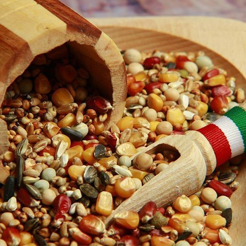 Ingrediente Selectate cu Grijă: Combinație optimă de semințe de porumb, grâu, mazăre, ovăz, mei și altele pentru o nutriție completă.