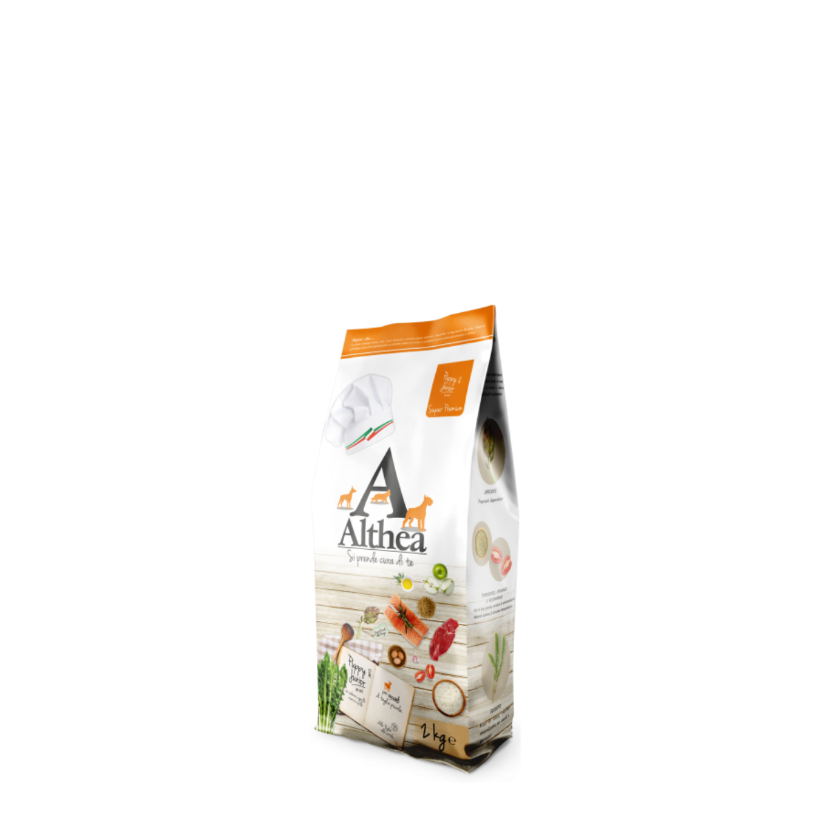 Hrana completa, cu carne de vita, miel, pui si somon, Althea Puppy & Junior mini-2Kg , Althea Puppy & Junior mini-2Kg este o h rana destinata cresterii cainilor juniori, facuta din carne si peste. Îmbogățit cu calciu, pentru întărirea oaselor și cu ouă, pentru o valoare biologică ridicată. Sanatoasa, gustoasa, apetisanta