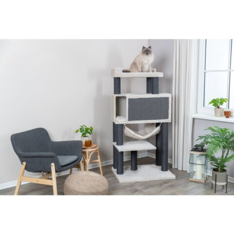 Cu o structură robustă și un design atrăgător, XXL Maciel include platforme, scări și hamace, creând un spațiu versatil care răspunde nevoilor de activitate și confort ale animalului tău. Culoarea gri este ușor de integrat în orice decor, iar materialele din care este realizat ansamblul sunt durabile și confortabile.