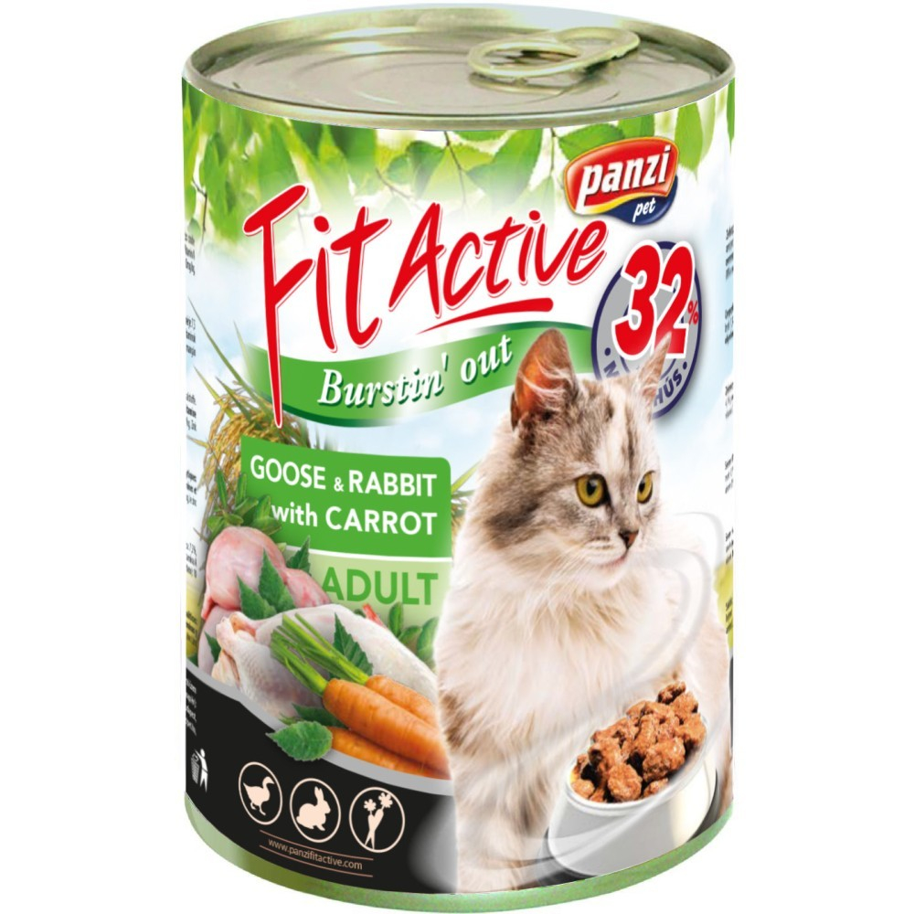 Panzi FitActive Conservă pentru Pisici Adulți cu Gâscă, Iepure și Morcovi - 415 g x 24 bucăți