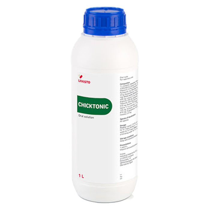 Chicktonic este indicat pentru prevenirea și corectarea avitaminozei și a stărilor de malnutriție, pentru a reduce mortalitatea puiilor și ca supliment de susținere în stările de reproducere, producție intensă, stres și sindromul ficatului gras.